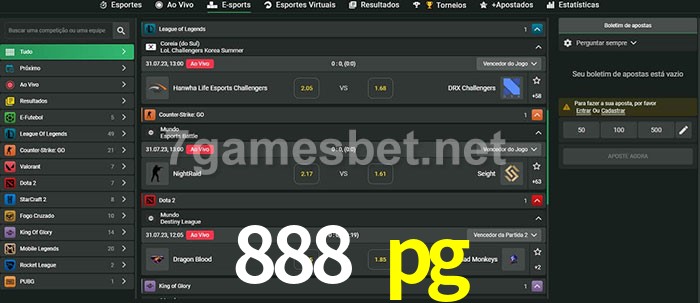 A aposta 888 pg oferece aos jogadores a experiência mais conveniente de apostas em eSports!